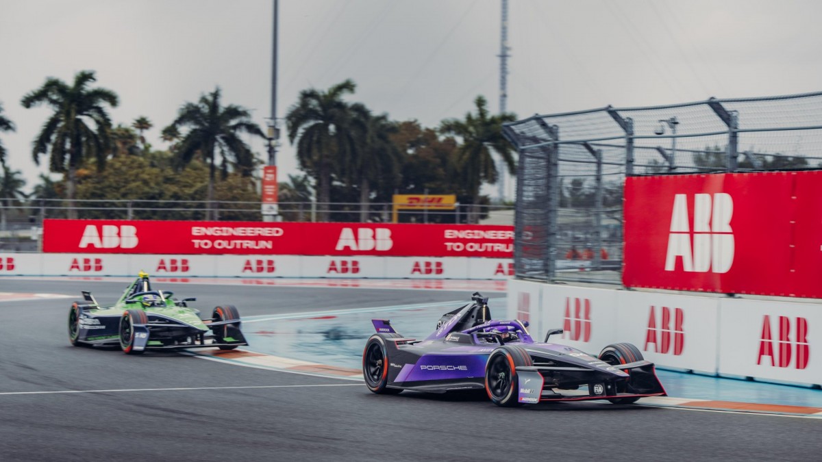 延續墨西哥站四部保時捷賽車全數闖入前九名、全面進帳積分的氣勢後,Nico Müller 與 Pascal Wehrlein 於 1 月 31 日舉行的 ABB FIA電動方程式世界錦標賽邁阿密賽事中,為保時捷廠隊奪下隊史第五次雙人同登頒獎台的佳績,並助保時捷登上車隊與製造商積分榜雙料領先。來自保時捷客戶車隊 Cupra Kiro 與 Andretti Formula E 的 Pepe Martí 及 Jake Dennis 分別以第九與第十名完賽。共有四部保時捷賽車進入積分圈。