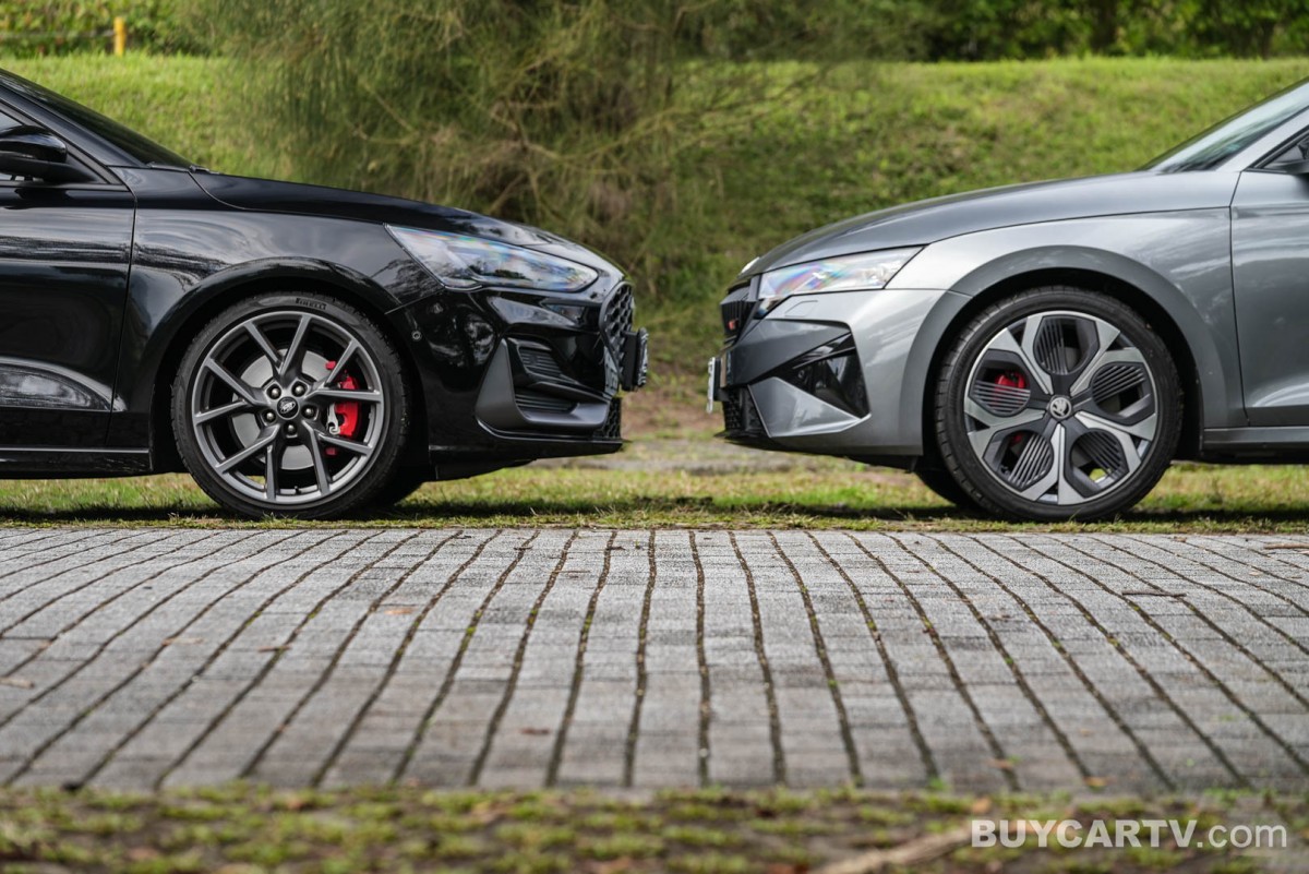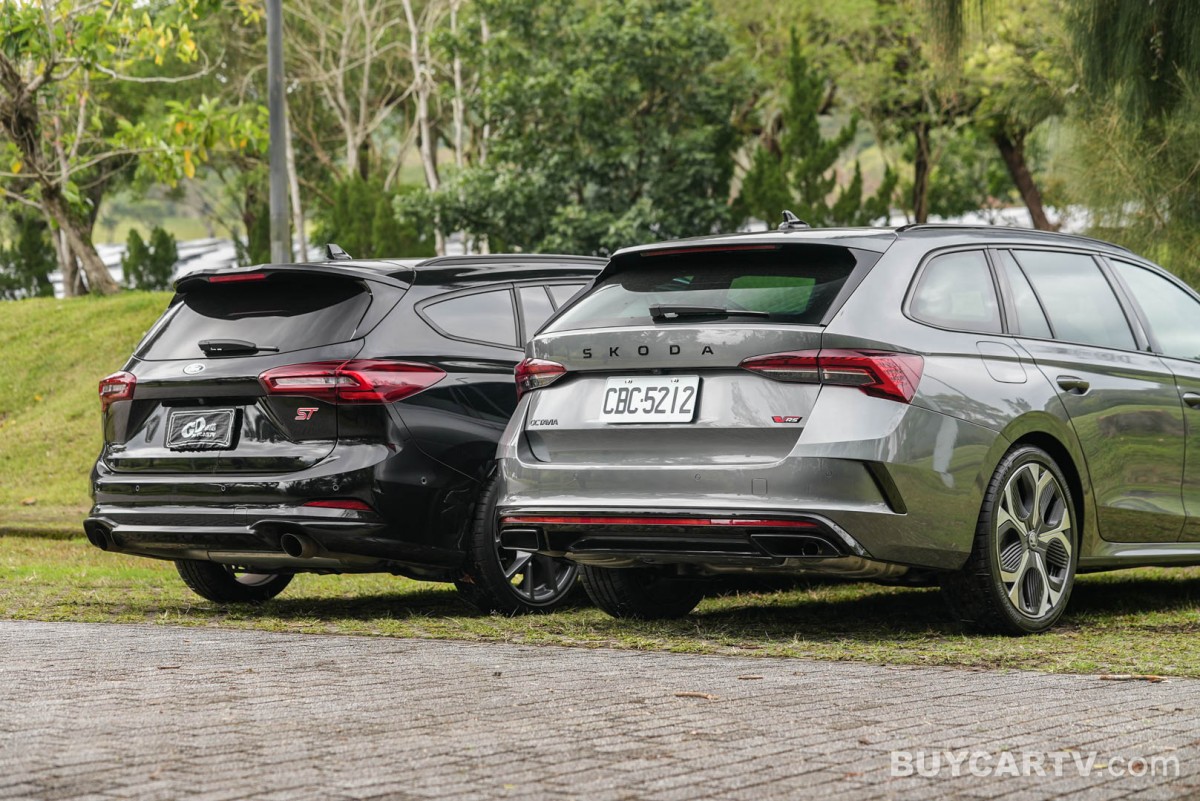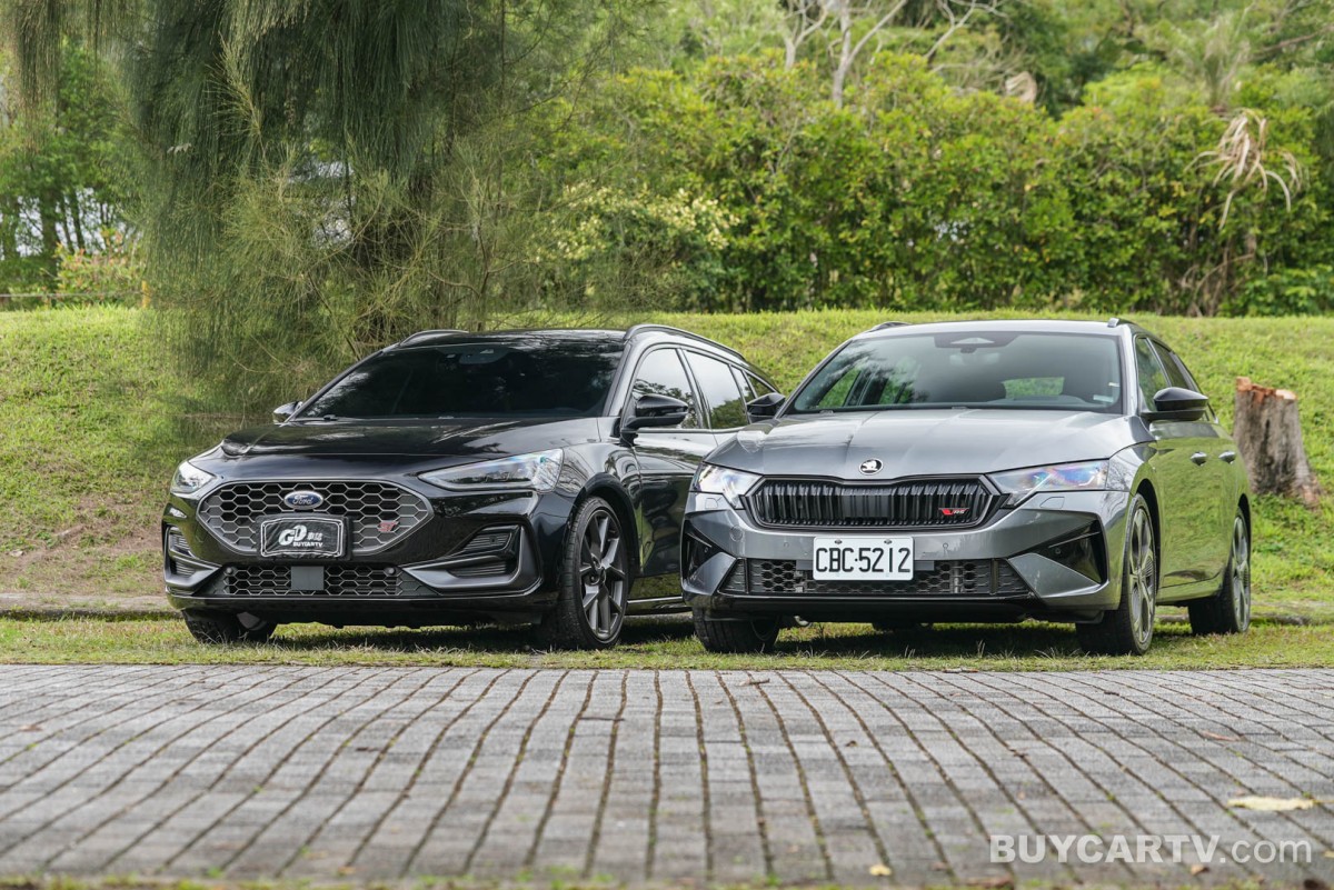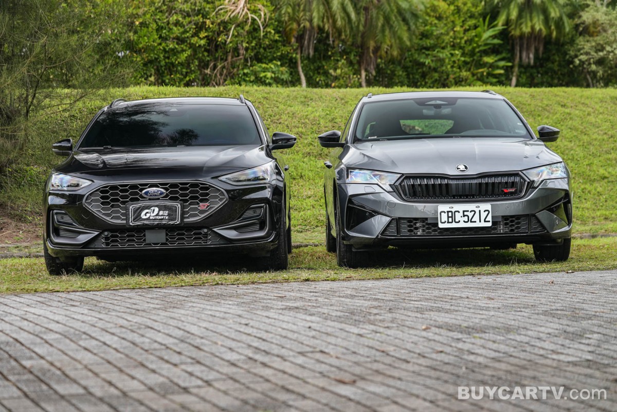 車側透過修長的旅行車身比例,展現兼具優雅與運動感的線條,搭配大尺寸鋁合金輪圈與紅色煞車卡鉗,強調性能化身份。車尾則以雙出排氣配置與運動化下擾流設計,呼應 ST 車型的性能定位,同時維持整體造型的成熟與低調。