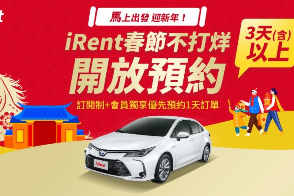 iRent春節早鳥預約多項優惠開跑 「訂閱制+」會員優惠再加碼 「時時回饋計畫」超有感回饋同步登場