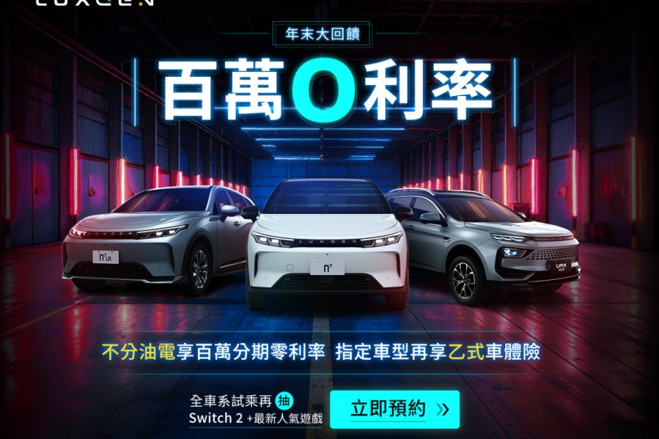 LUXGEN歲末大方送 不分油電100萬分期0利率專案 指定車型再送乙式車體險 12月預約試駕LUXGEN URX、U6及純電車款n⁷抽Switch2再送人氣遊戲好禮