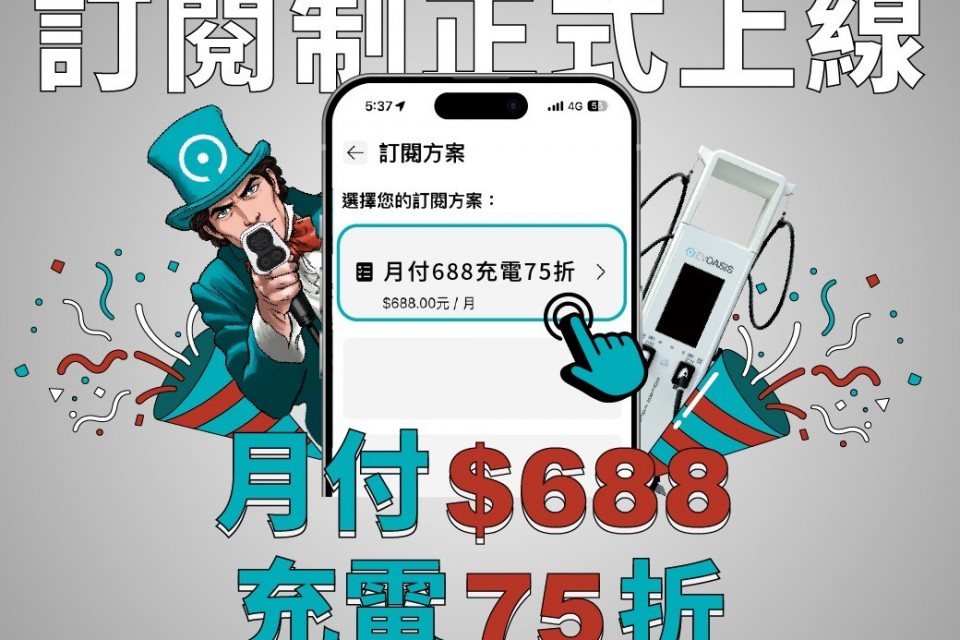 EVOASIS 月付 $688 充電 75 折,離峰每度 $4.88 挑戰 DC 快充最低價!職業駕駛跑越多省越多!