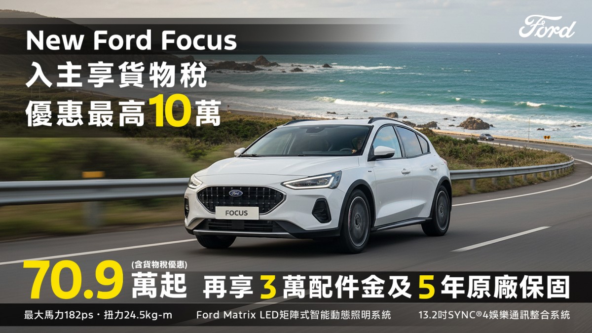 歐洲超能智駕跑旅The All-New Ford Kuga採用1.5T EcoBoost®渦輪增壓汽油引擎,經專屬調校可輸出187ps的強勁動力,動力與操控完美融合,帶來前所未有的駕馭快感,入主即享力挺價83.9萬(含舊換新),再加碼高額分期0利率及5年原廠保固;New Ford Ranger Wildtrak FRS Edition搭載Advanced 4WD智慧四輪驅動系統,可精準判斷全地形路況,智慧調節動力輸出,輕鬆征服各種險峻地形,入主享159.8萬(含舊換新)、百萬0利率及5年原廠保固;New Ford Focus提供多款車型選擇,搭配德規精準底盤調校,帶來靈活操控感受,入主享貨物稅優惠價70.9萬起,再加碼3萬元配件金及5年原廠保固;歐洲進口正七人座New Ford Tourneo Connect福特旅玩家,享貨物稅優惠價109.8萬起,加碼提供百萬0利率及6年不限里程原廠保固;歐洲首選國際商旅The All-New Ford Tourneo Custom福特旅行家,享貨物稅優惠價141.8萬元起,入主再享高額0利率。全方位陣容一次到位,無論是熱血自駕或商務出行,皆能滿足您的多元移動渴望。