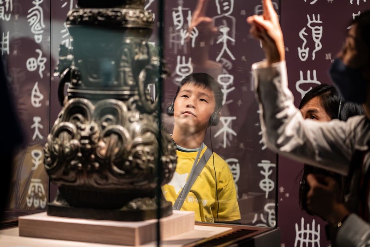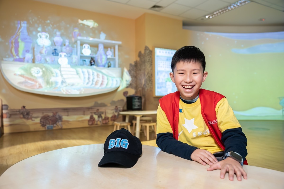 1月27日一大早,阿晉和家人抵達故宮,展開畢生難忘的體驗。在故宮為阿晉精心準備的文物課上,文物專員傳授給阿晉中國古代製書的藝術,帶領他親手製作一本線裝書。緊接著,由專人為特別喜歡青銅器、繪畫和書法的阿晉安排了一場導覽;他不僅認識許多文物背後的歷史,更近距離觀摩博物館專業導覽員的工作。阿晉興奮地表示:「導覽絕對是我今天最難忘的體驗;還有我最喜歡的就是毛公鼎。」在一整天行程進入尾聲時,阿晉也實現了在故宮工作的心願,擔任兒童學藝中心的解說員,帶領另一位孩子參觀各種互動設施。