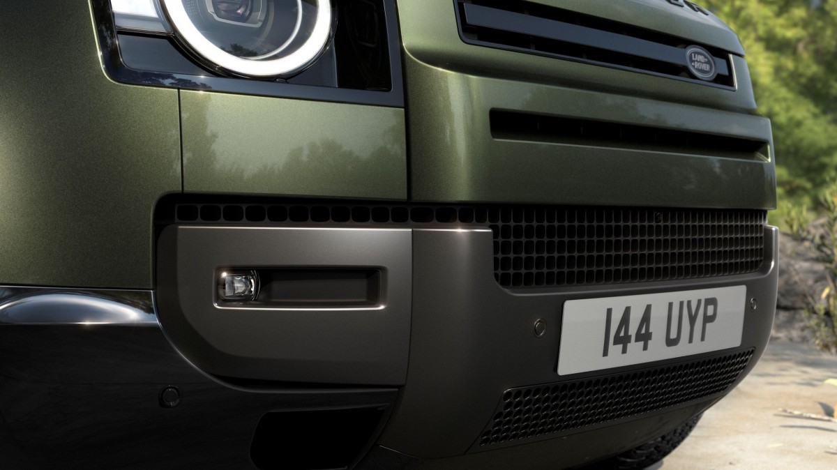 車頭採用暗化 Land Rover 徽飾與護罩飾條,搭配優化設計的 X-Dynamic 喀爾巴阡灰 Carpathian Grey 飾面保險桿強化視覺重心與穩定感。引擎蓋與車側進氣孔則運用數位世代的 Squ-ircle 設計元素點綴,展現充滿探險感的現代化風格,並且搭配全新的亮黑色 Defender 品牌輪圈中央飾蓋,以及提供選配的全新 22 吋深灰鑽石塗裝與亮澤黑對比色輪圈。