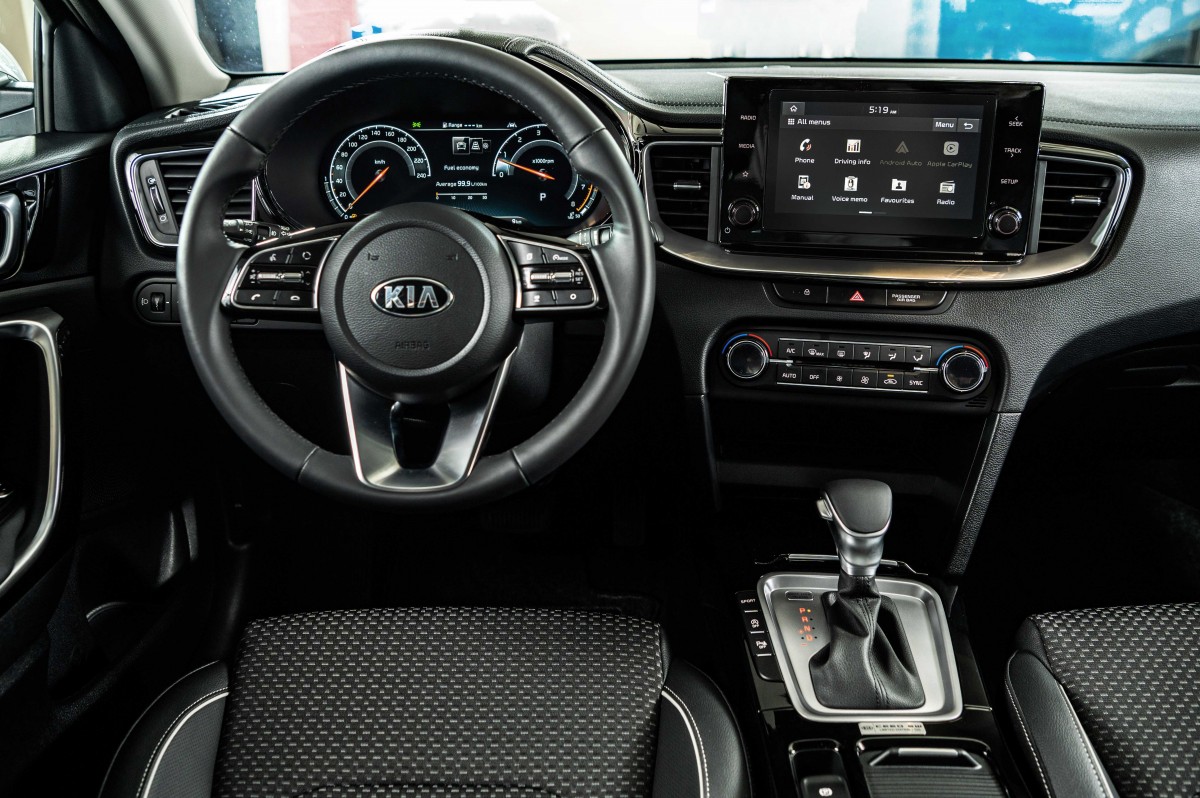 KIA Ceed Sportswagon不僅擁有絕美的歐風外貌,更搭載濃厚歐風座艙。一坐進車艙,映入眼簾的是高質感的皮質方向盤、排檔桿,營造了明亮簡潔的氛圍。8吋多媒體影音觸控系統,透過支援Apple CarPlayTM與Android AutoTM連結,大幅提升行車時的便利性,並搭載雙區恆溫空調系統,一切設計皆圍繞著駕駛者而考量。和外型相呼應的類金屬旋鏢式設計把手,搭配Deluxe歐風複合材質座椅,從細節處處顯現內裝質感與巧思。