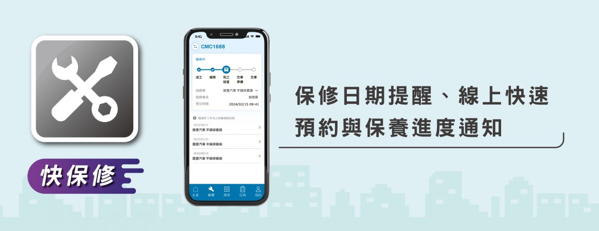 貼心整合預約保修與查詢服務廠功能,便利安排車輛保修,確保車輛狀況與行車安全;返廠時可透過遠端保修進度顯示掌握進度,不須現場枯等,讓時間運用更有彈性。