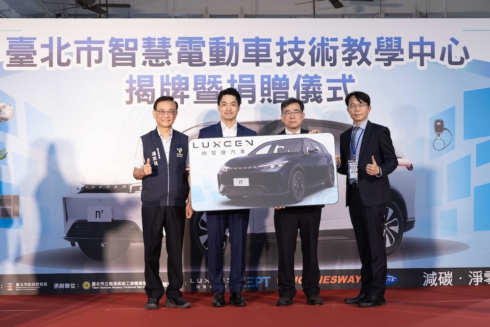 LUXGEN 攜手臺北市政府教育局與南港高工,共同為台北市全國唯一的「智慧電動車技術教學中心」進行揭幕。在臺北市長蔣萬安的見證下,LUXGEN捐贈首輛銷售冠軍純電休旅 n⁷ 作為教學用車,並提供專業技術資源,協助打造一個以「產、官、學」三方合作為核心的新世代人才培育基地。