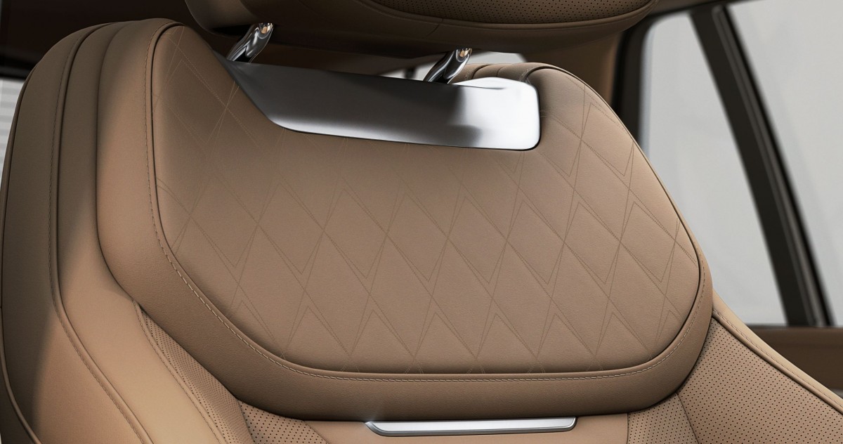 車內延續外觀設計風格,包括全車座椅、車頂篷、安全帶與腳踏墊皆使用經典的 Caraway 香芹籽棕色作為主調,營造與車身相同的低調奢華氛圍;延續 SV Intrepid 主題設計,採用黑色陶瓷所製成的排檔座、控制旋鈕與啟動按鍵,點綴奢華質感細節。前座椅面採用 Near-Aniline leather 近苯胺頂級皮革,後座則採用 Semi-Aniline leather 半苯胺皮革,於座椅肩靠與後座腰部靠枕採用 SV Bespoke 特殊訂製鑽石樣式刺繡,呈現奢華且不失舒適的乘坐感受,客製化車門金屬門檻鑲嵌 Range Rover SV Fifty-Five 字樣,低調宣示其不凡意義。
