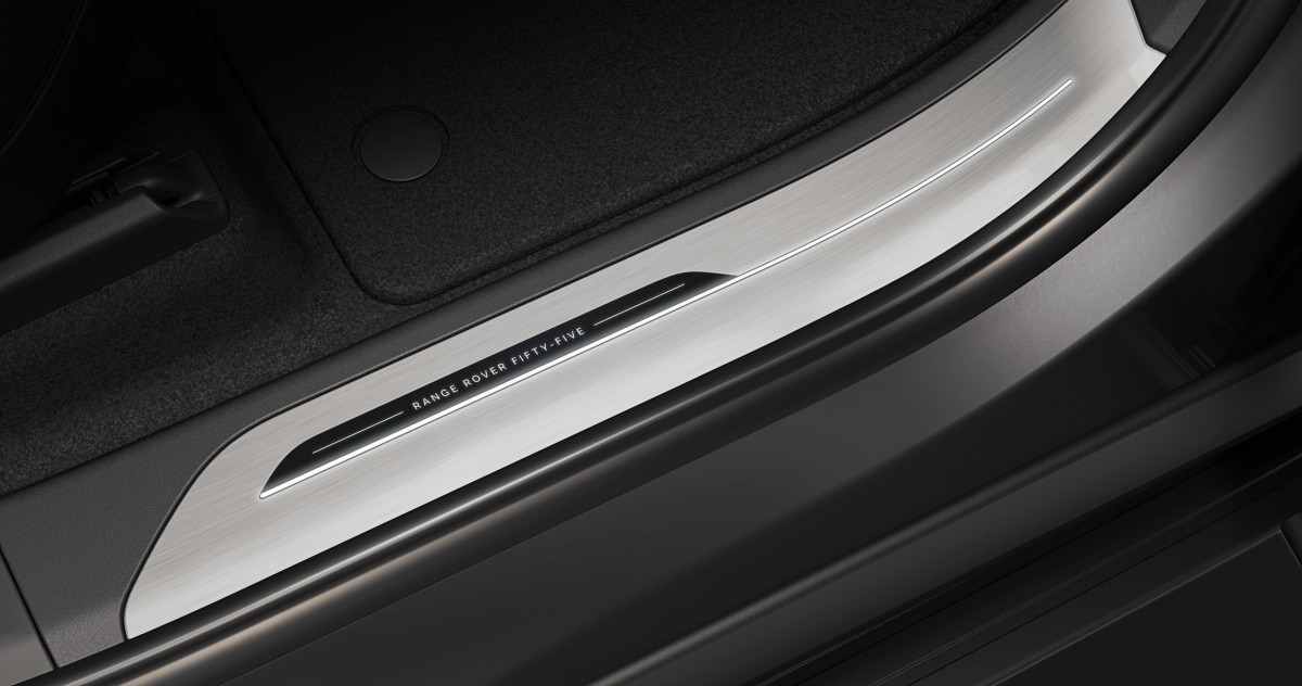外觀設計結合 SV Intrepid 外觀套件,運用石墨色巧妙點綴全車外觀飾條,勾勒高級與沉穩的大器風格;後視鏡則採用納維克黑點綴,並配備 23 吋 10幅式鍛造緞光深灰/黑對比與亮澤納維克黑相間輪圈與黑色煞車卡鉗,以沉穩俐落線條與配色襯托限量及特殊性,並致敬 Range Rover 55 週年的歷史時刻。