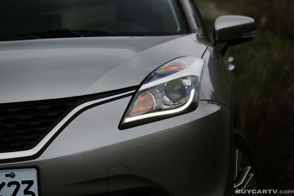 接著我們來談談外型,Baleno採用的是Suzuki稱為Liquid Flow液體流動的新世代造型語言,和目前品牌下其他車系相較,主要是透過更為流暢且立體化的鈑件弧線,營造出更為豐富的視覺感受。在車頭的部分,Baleno呈現出的是飛翼狀的水箱護罩設計,相當顯眼的鍍鉻飾條,並向兩旁延伸到頭燈組內部,這樣的手法或許不是車壇首見,但確實提升不少層次感;另外,兩旁的燈組除了內建LED日型燈,更將HID氣體放電式頭燈列為標準配備,而在保桿的兩旁也配置了圓形的霧燈組,整體來說車頭的視覺算是頗富新意。