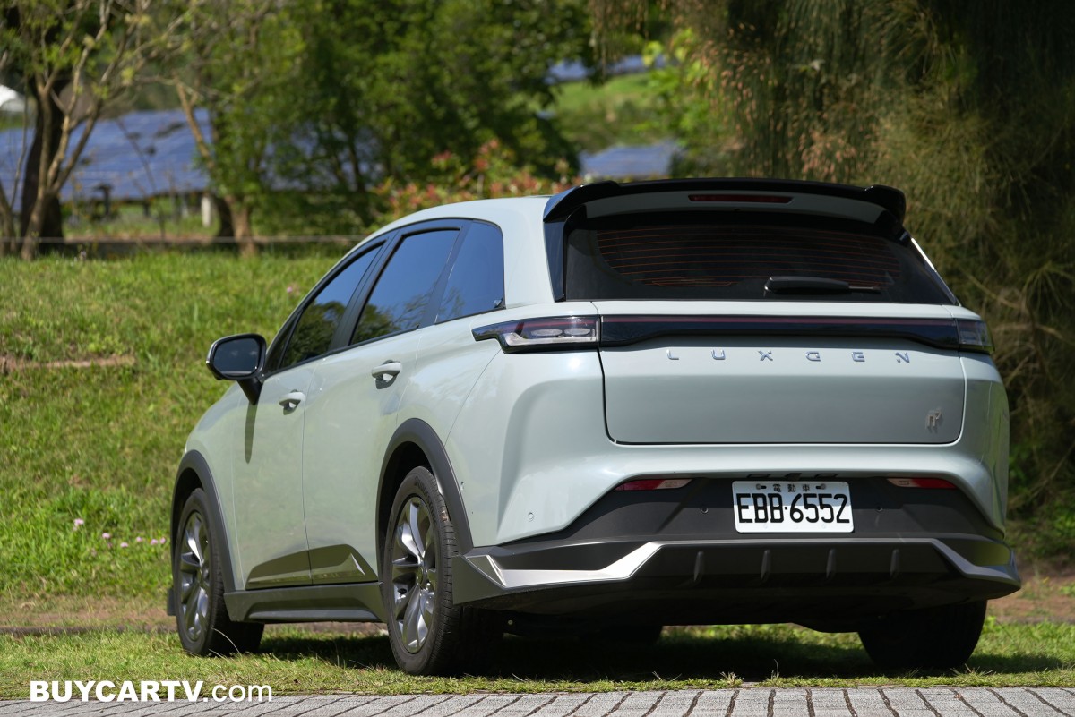 Luxgen n7 採用品牌最新世代設計語彙,透過封閉式車頭造型與銳利燈組輪廓,營造出純電車特有的未來科技感。車頭線條簡潔俐落,搭配貫穿式燈條與辨識度極高的光型設計,強調新世代電動車定位,同時提升夜間辨識效果。