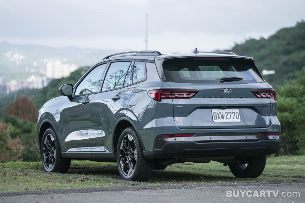 Ford Territory 以「全球新世代休旅設計語彙」打造外型,全車呈現俐落、現代且具有科技感的視覺風格。車頭導入分離式 LED 智慧頭燈與貫穿式日行燈。車尾採用寬體式 LED 光條尾燈組,並加入立體擾流尾翼、雙色後保桿與車型專屬銘牌。