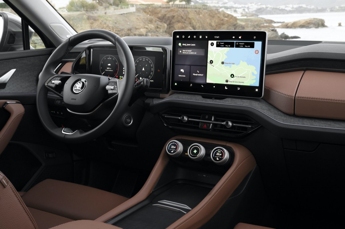 在內裝方面,全新第二代Kodiaq的設計充分體現了Škoda對科技與便利性的追求。配備13吋的懸浮式中控螢幕,清晰的畫面顯示與直觀的操作介面,讓車主可以輕鬆控制各種車輛功能。此外,Škoda 還推出了全新的智慧旋鈕控制系統(Smart Dials),這項創新技術結合了數位顯示與觸覺反饋,讓車主可以透過旋轉和按壓旋鈕來快速調整車內溫度、音量、空調風向等多項功能,操作簡便直觀。值得一提的是,全新Kodiaq首次導入了HUD投影式平視顯示器(Head-Up Display),該技術可以將關鍵駕駛資訊直接投射到前擋風玻璃上,避免駕駛者分心,大幅提高行車安全性。這項技術與全新10吋全螢幕全彩數位儀表相輔相成,為駕駛者提供了更高層次的數位化駕駛體驗。